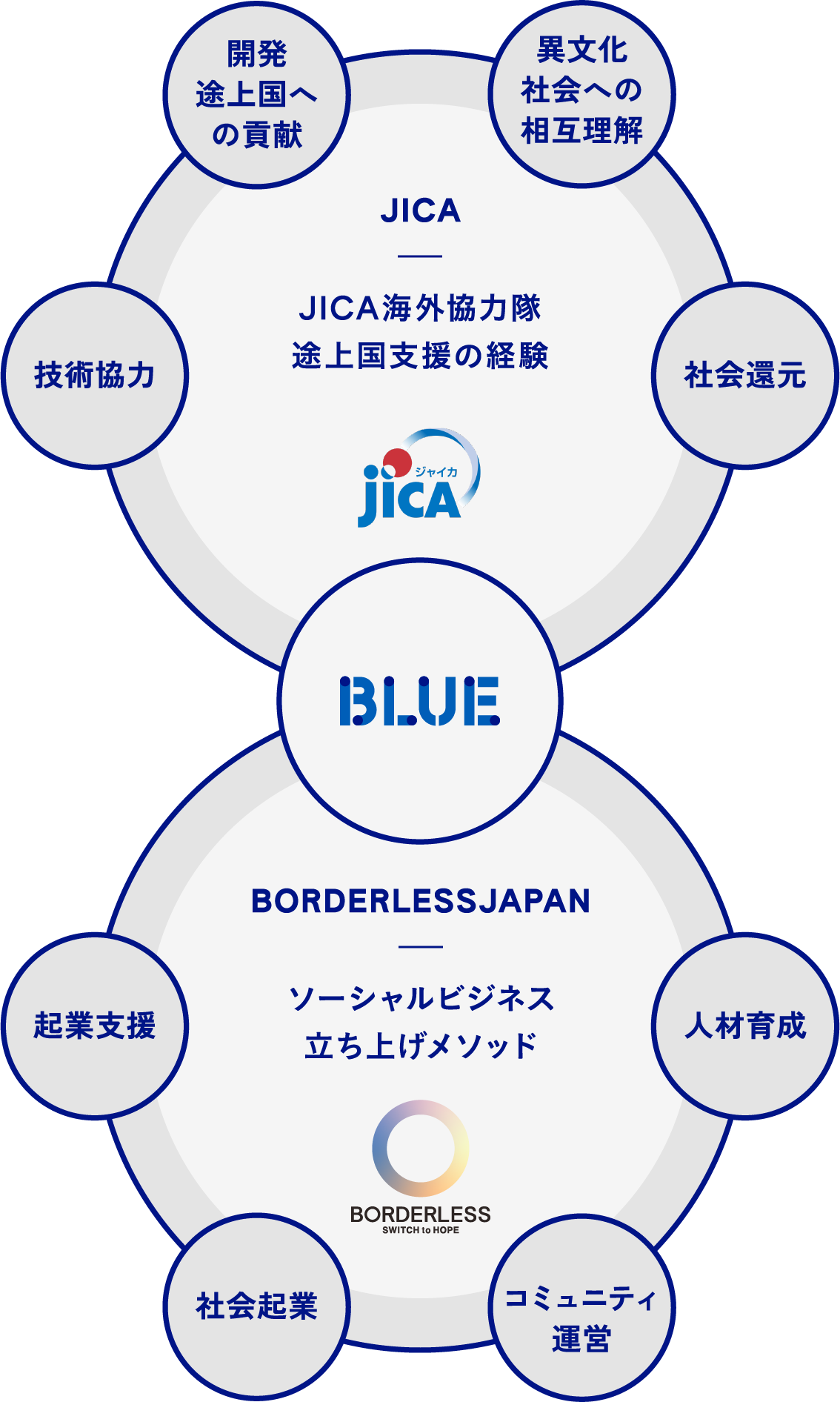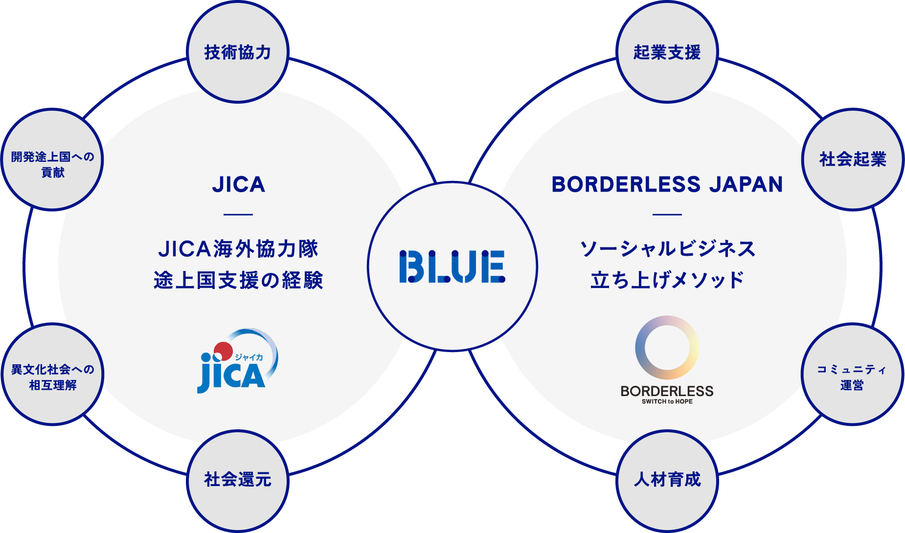 JICA海外協力隊起業支援プロジェクト「BLUE」とは、JICA海外協力隊員の帰国後の社会還元支援を目的とした起業支援事業です。帰国後に、協力隊で培った経験を活かしビジネスを通して、日本の地域課題を解決し地域経済を活性化することや、海外の社会課題の解決に向けた動きなどが期待されます。