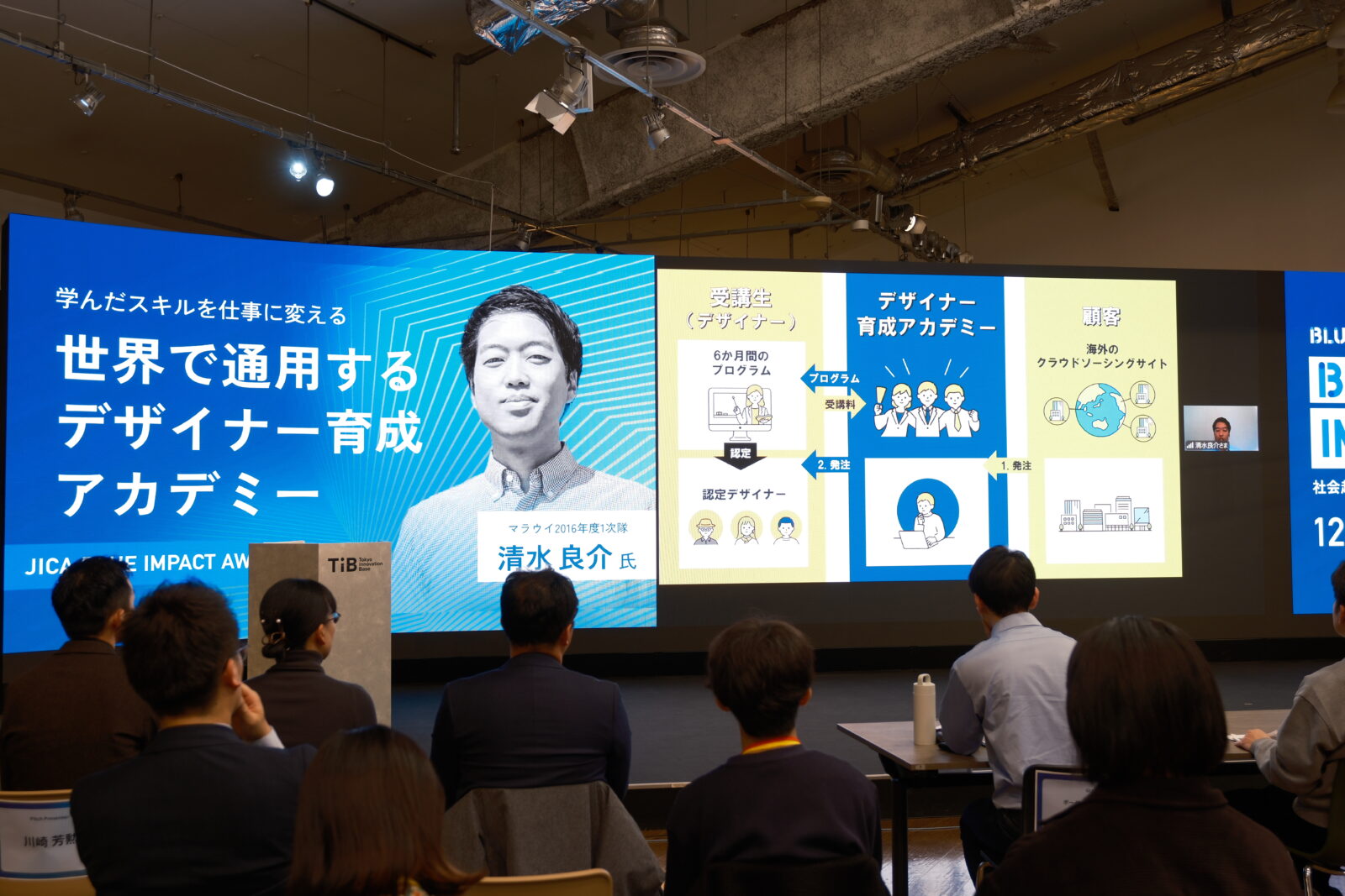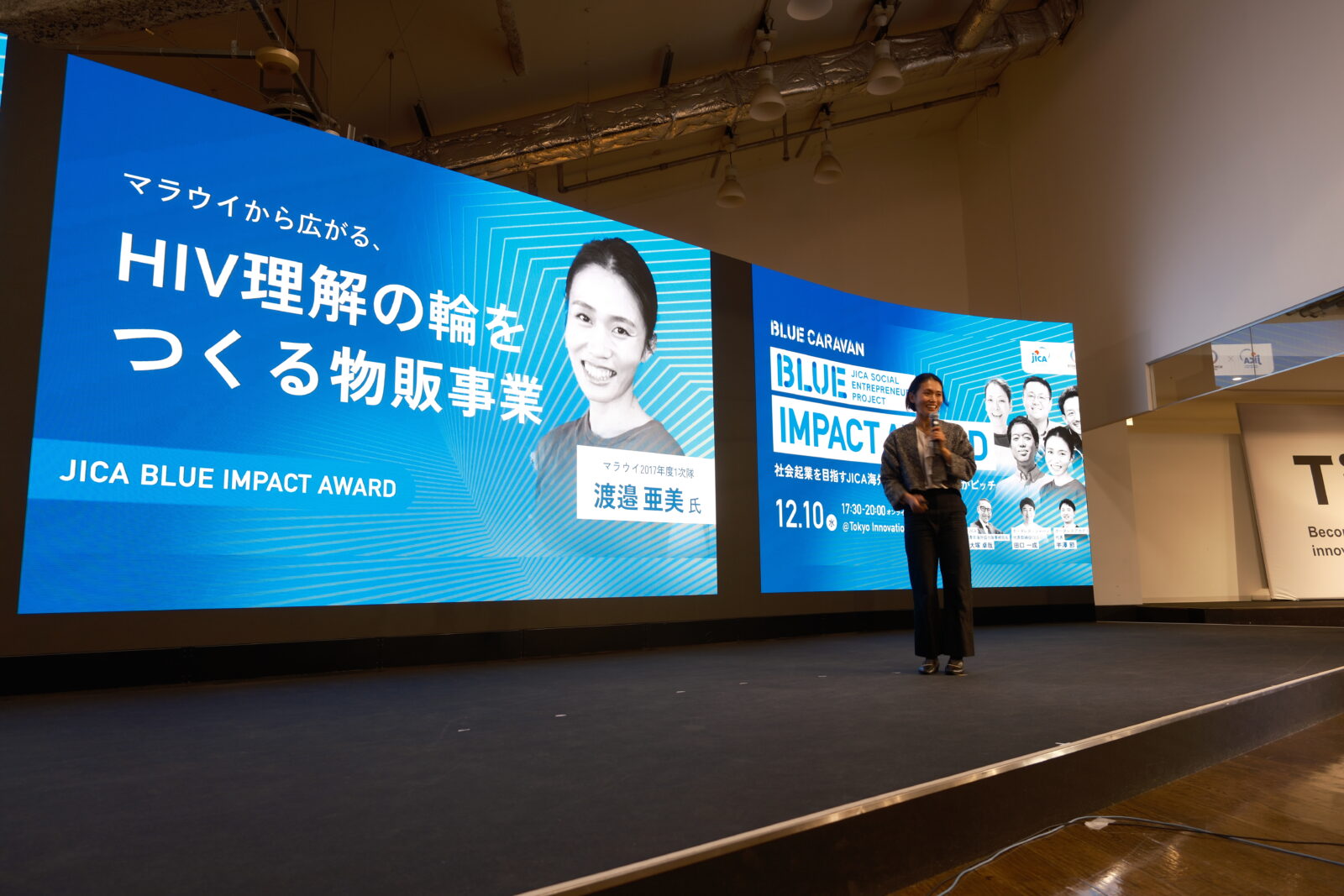 2025年12月10日、東京都のTIB(Tokyo Innovation Base)にて「JICA BLUE CARAVAN@TOKYO」が開催されました。会場とオンラインのハイブリッド形式で実施され、約300名の方が申し込みをされました。当日、開場には約80名の方が足を運んでくださり、オンライン参加含めて多くの方にご参加いただきました。イベントは盛況のうちに終了しました。