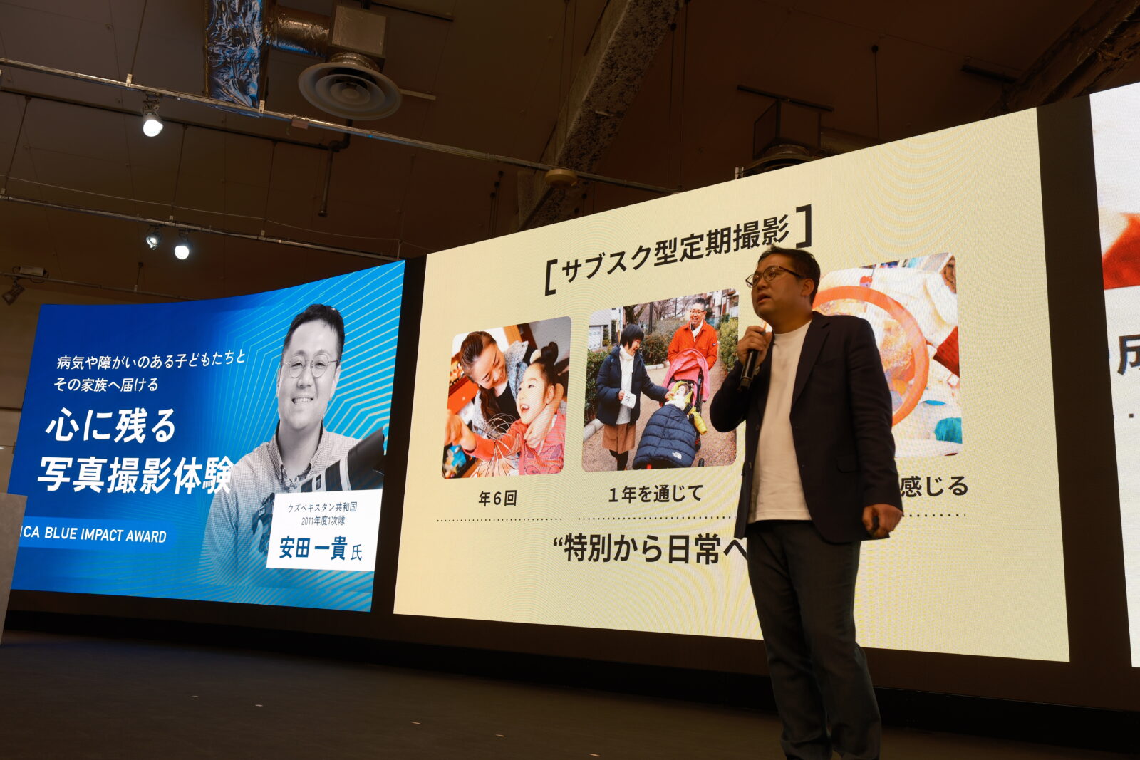今後はサブスク型の撮影も展開し、日常を定期的に記録することで、「先が見えにくい子どもたちの成長を一緒に見守り、喜び合う伴走の形」を目指します。最後に「誰もが主役になれるバリアフリーのフォトスタジオを作ることが夢」と語り、会場を感動で包みました。